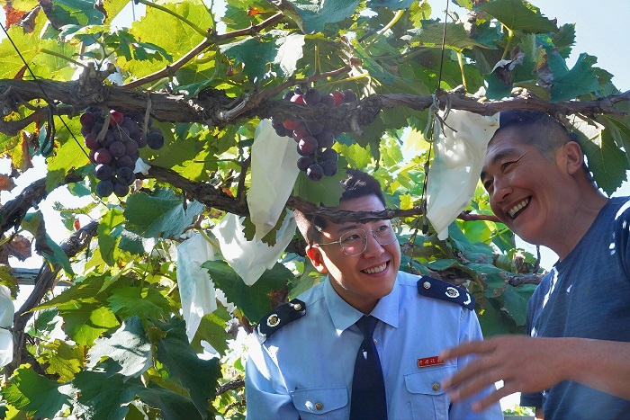 辽宁长安网讯 正值葡萄成熟上市旺季,辽阳县税务局青年干部走进兴隆镇众源兴葡萄专业种植合作社,将涉农税费优惠政策送入种植户手上,并针对线上线下不同销售方式提供涉税意见,为拓展当地葡萄产业注入税力量。