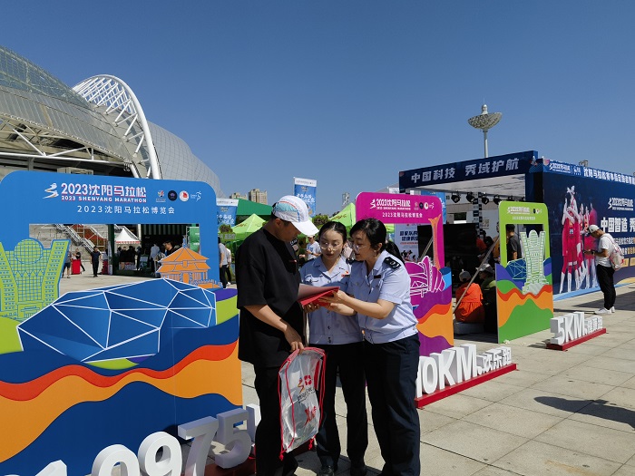 辽宁长安网讯 云天收夏色,木叶动秋声。9月17日,“奔跑沈阳 振兴突破”2023沈阳马拉松赛鸣枪起跑,来自全球的2.5万名马拉松爱好者齐聚沈城,沈阳市浑南区税务局干部职工踊跃参赛、志愿服务,同时借此盛事,开展“便民办税春风行动”,让税收政策直达到人。