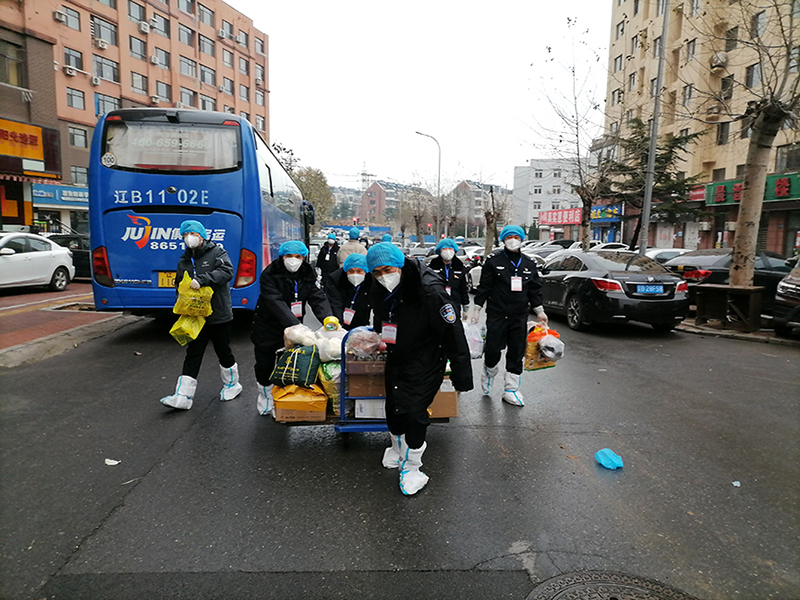 在单位,他们的身份是政法干警,但是在隔离区内外,他们跑腿送货上楼,在寒风中维持秩序,对遇到困难的居民嘘寒问暖,他们都是老百姓的服务员。